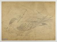 Drawing depicting: Hydroprogne caspia -- Caspian Tern, CharrĂ¡n caspia, Sterne caspienne [Powerful tern]