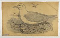 Drawing depicting: Larus hyperboreus -- Glaucous Gull; Gaviota blanca, goƩland bourgmestre. Alternate name on piece: Larus glaucus [Glaucous gull]