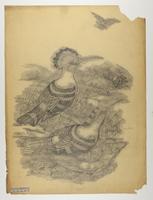 Drawing depicting: Upupa epops -- Common Hoopoe, Eurasian Hoopoe, Hoopoe. Alternate name on piece: Upupa nigripennis [Indian hoopoe]