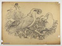Drawing depicting: Chlamydera nuchalis orientalis. Alternate name on piece: Chlamydera orientalis [Queensland bower-bird]
