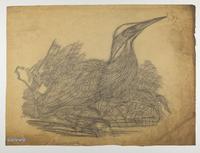 Drawing depicting: Botaurus lentiginosus -- American Bittern; Avetoro norteño, butor d'Amérique [American bittern]