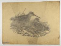 Drawing depicting: Limnodromus griseus -- Short-billed Dowitcher; bécassin roux, Costurero pico corto. Alternate name on piece: Macroramphus griseus [Red-breasted or brown snipe]