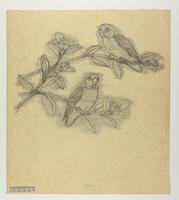 Drawing depicting: Cyclopsitta gulielmitertii -- Orange-breasted Fig Parrot. Alternate name on piece: Cyclopsitta suavissima [D'albertis's perroquet]