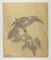 Drawing depicting: Melidectes leucostephes -- White-capped Honeyeater. Alternate name on piece: Melirrhophetes leucostephes [White-faced honey-eater]