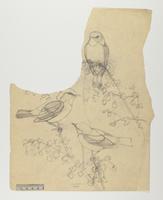 Drawing depicting: Saxicola leucura. Alternate name on piece: Pratincola leucura [White-tailed bush-chat]