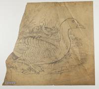Drawing depicting: Anser fabalis -- Bean Goose; oie des moissons. Alternate name on piece: Anser segetum [Bean-goose]
