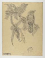 Drawing depicting: Chrysococcyx maculatus -- Asian Emerald Cuckoo. Alternate name on piece: Chalcites hodgsoni [Emerald cuckoo]