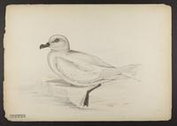 Drawing depicting: Puffinus tenuirostris -- Short-tailed Shearwater, Pardela cola corta, Puffin à bec grêle. Alternate name on piece: Puffinus brevicaudus? [Short-tailed petrel]