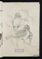 Drawing depicting: Cracticus torquatus -- Grey Butcherbird. Alternate name on piece: Cracticus destructor [Butcher-bird]