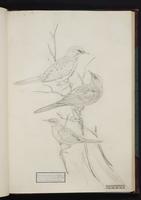 Drawing depicting: Cincloramphus cruralis -- Brown Songlark. Alternate name on piece: Cinclorhamphus (Cincloramphus) cantillans [Black-breasted cincloramphus]