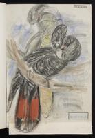 Drawing depicting: Calyptorhynchus banksii -- Red-tailed Black Cockatoo. Alternate name on piece: Calyptorhynchus macrorhynchus [Great-billed black cockatoo]