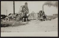 Applying asphalt coat to Front Street; view of asphalt plant; roller stuck on Main St.