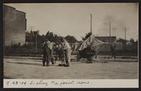 Applying asphalt coat to Front Street; view of asphalt plant; roller stuck on Main St.