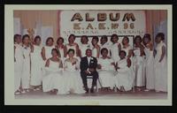 E.A.A. No. 96 - Group of eighteen and one man, all in evening formal wear, in two rows under banner reading "Album EAE No. 96"