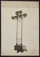 6 unidentified men by KC Monarchs Night baseball lighting trucks