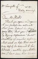 Letter to "Dearest Mrs Rossetti" (Lucy Madox Brown Rossetti?)