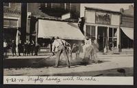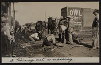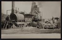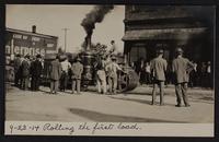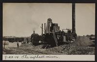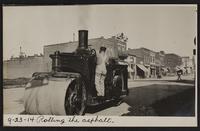 Applying asphalt coat to Front Street; view of asphalt plant; roller stuck on Main St., September-November 1914