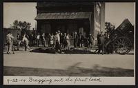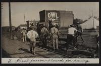 Applying asphalt coat to Front Street; view of asphalt plant; roller stuck on Main St.